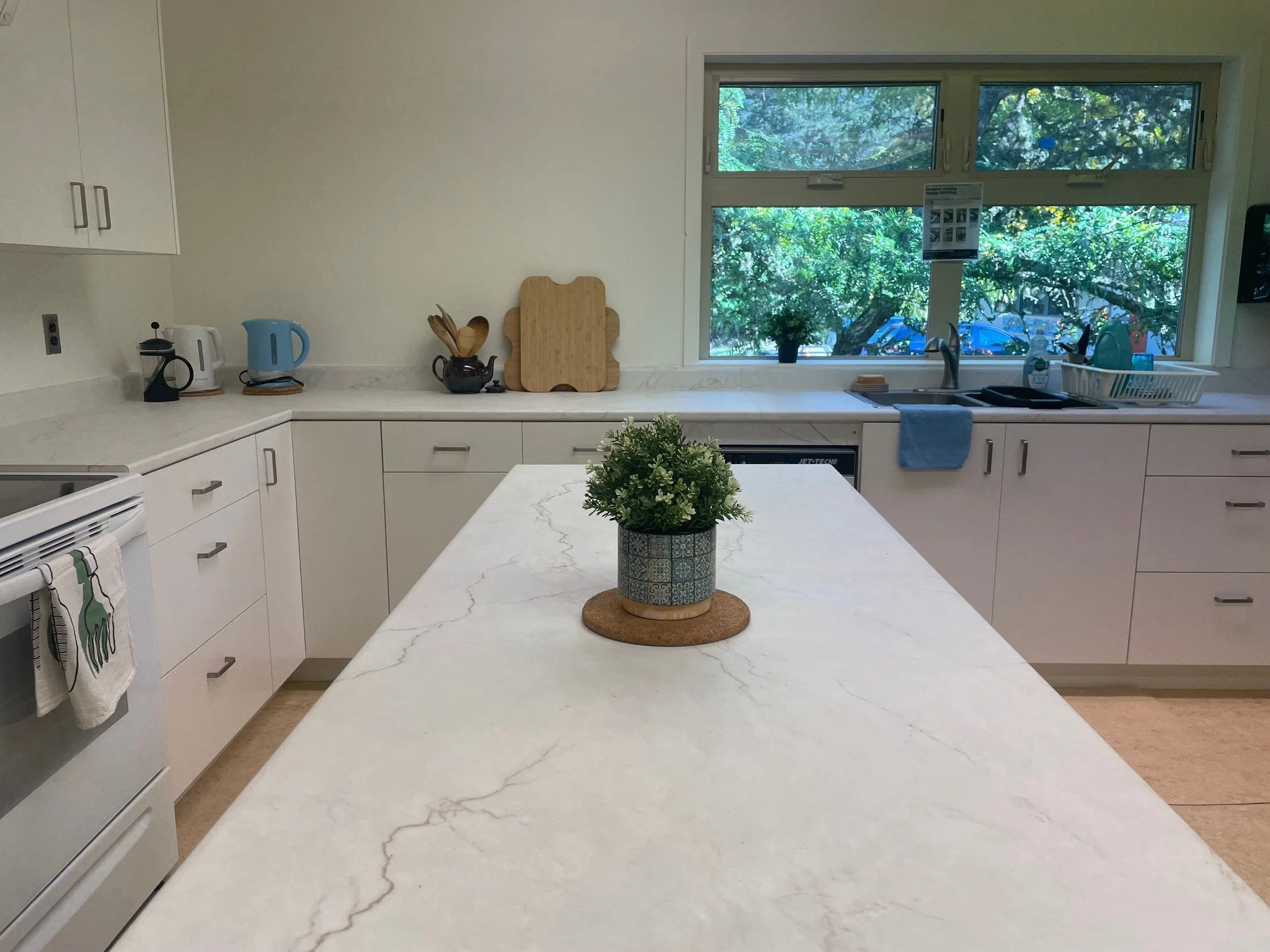 The kitchen is generally booked along with either the gym or the meeting room or both. Plates, bowls, cups and basic kitchen cutlery are included and available for use. There are two residential stoves, a residential fridge and a sanitizer.